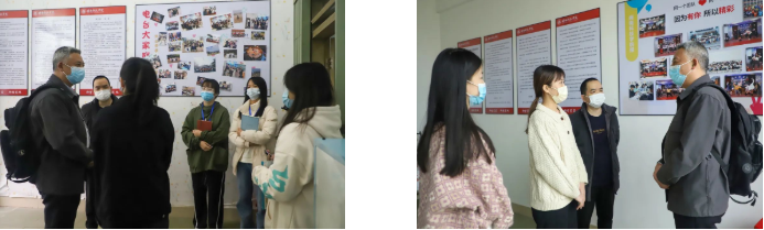 李旭书记一行实地调研了校园广播电台、《九体育在线平台报》报社、易班工作站、闽小科新媒体工作室等网络思政阵地,深入了解校媒组织和网络思政工作平台在学生团队建设、制度建设、平台建设、日常运行等方面的情况,并取得意见建议。