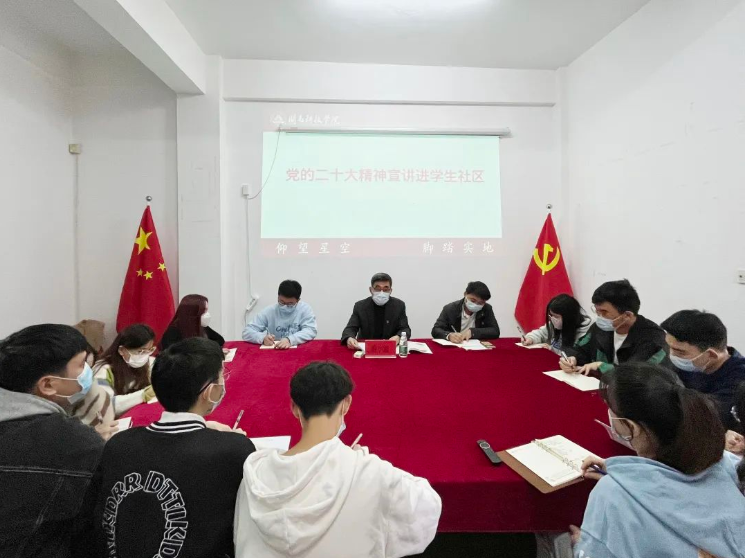 12月7日,校长游小波走进学生社区,与计算机信息学院师生代表座谈交流,宣讲党的二十大精神。
