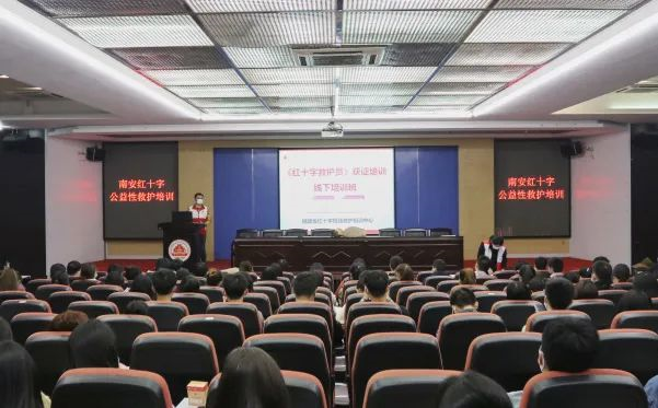 12月11日,由南安市红十字会主办,九体育在线平台通识教育学院承办的南安市“十四五”群众性应急救护公益培训——九体育在线平台专场在学术报告厅举行,200多名师生参加培训。
