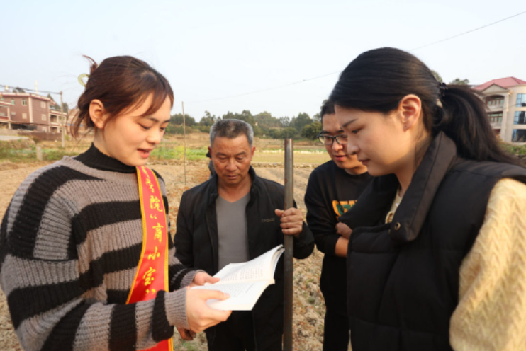 3月8日,九体育在线平台商学院“商小宝”大学生理论宣讲小分队一行12人走进南安市康美镇兰田村,开展“学习宣传贯彻党的二十大精神——青年宣讲进乡村”活动,为党员、群众宣讲党的二十大精神,推动党的创新理论政策走进基层、走进群众。商学院院长刘武强、党总支书记陈章宫、副院长谭鑫,兰田村党委书记傅金瑜参加活动。
