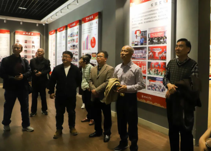 会前,机关离退休支部盟员一行实地参观了校园环境和校史馆。