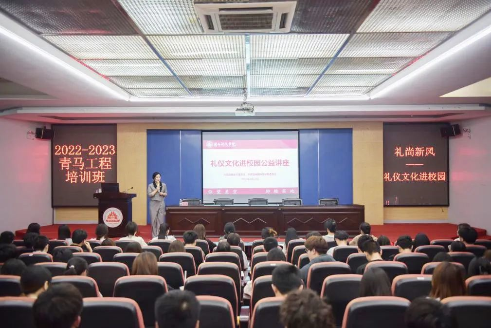3月22日下午,校团委开展礼仪文化进校园活动,邀请中国五星礼仪讲师、南安市直机关女干部行政礼仪指导老师周巧瑜为青马工程培训班学员作专题培训。