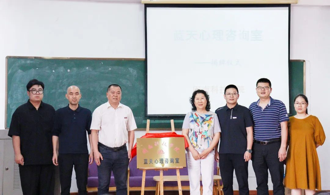 揭牌仪式上,校党委副书记林树生与校关工委副主任、人文学院心理学专业王希华教授共同为“蓝天心理咨询室”揭牌。
