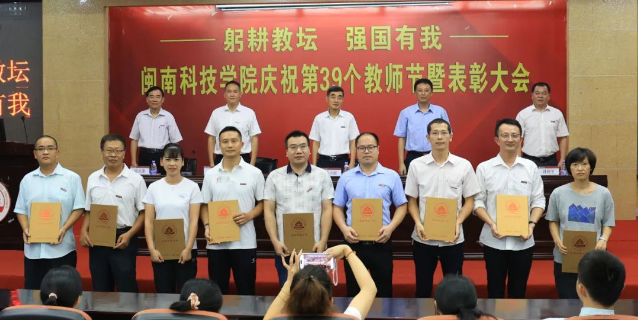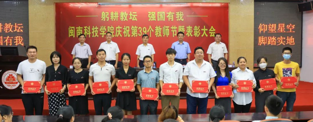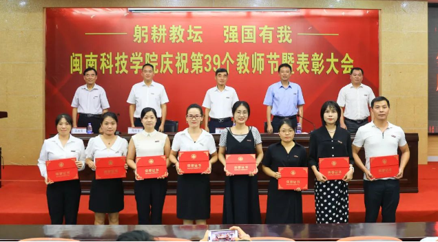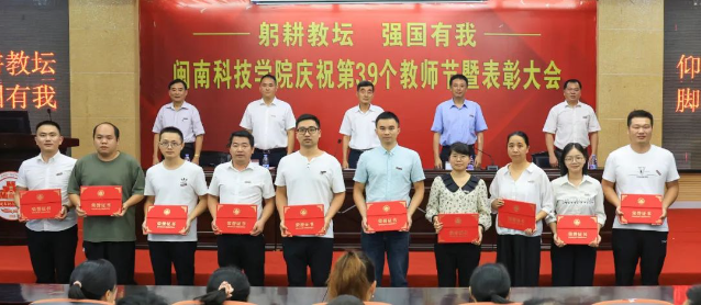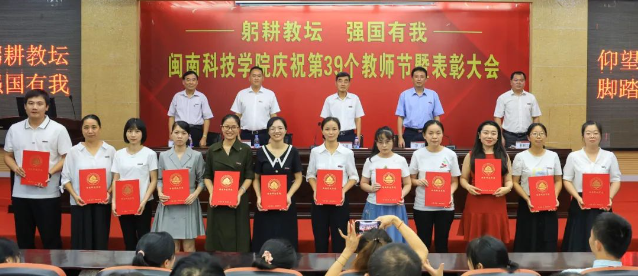校党委书记李旭在主持大会时强调,各单位要认真领会,抓好落实,切实把教师队伍建设作为基础性工作,扎实做好引才育才留才工作;把师德师风作为第一标准,教育引导广大教师牢记嘱托,树立“躬耕教坛,强国有我”的志向和抱负;把营造尊师重教浓厚氛围作为共同的责任,落实到日常工作中,体现到日常言行上。同时,他希望广大教师,以先进为榜样,认真贯彻党的教育方针,大力弘扬教育家精神,自信自强、踔厉奋发,矢志为国家培养德智体美劳全面发展的社会主义建设者和接班人,造就更多可堪大用、能担重任的栋梁之才,为闽科建设高水平应用型本科大学展现新作为,做出新贡献。