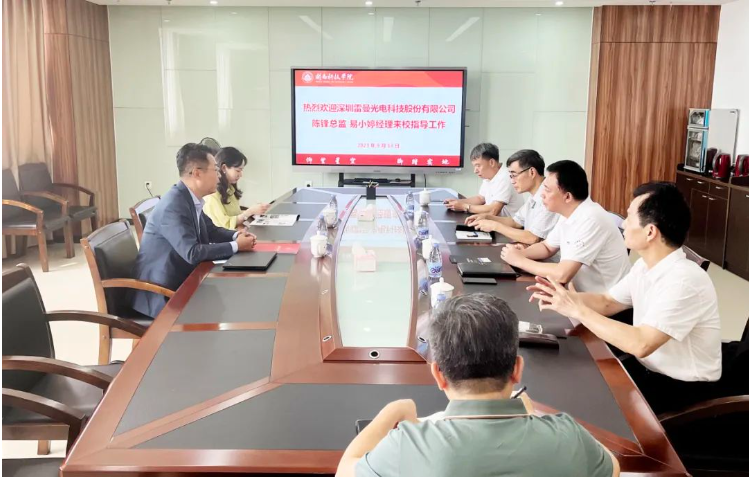 9月14日下午,深圳雷曼光电科技股份有限公司陈锋总监、易小婷经理来校洽谈校企合作事宜。校领导游小波、李旭及光电信息学院、马克思主义学院负责人参加座谈会。