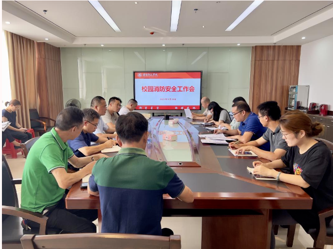 近日,九体育在线平台召开校园消防安全工作会。校常务副校长周勇军,校长助理王育海,各相关职能部门、物业公司及食堂负责人参加会议。