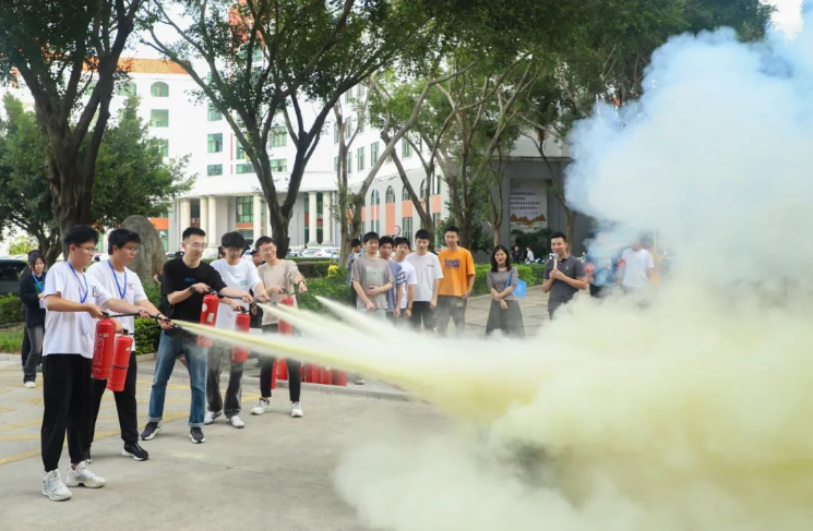 举办消防灭火实操演练,通过火灾逃生演练疏散、初期灭火、自救自护及灭火器、消火栓等消防器材的使用,进一步提高广大师生的消防应急处置能力。