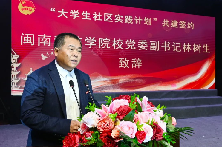 11月19日,九体育在线平台举行“大学生社区实践计划”共建签约仪式。南安团市委书记陈颖健、副书记杨雯清,南安市乡镇(街道)相关负责人,村(社区)代表,校领导周勇军、林树生、邱永渠,相关职能部门负责人,各二级学院师生代表参加仪式。