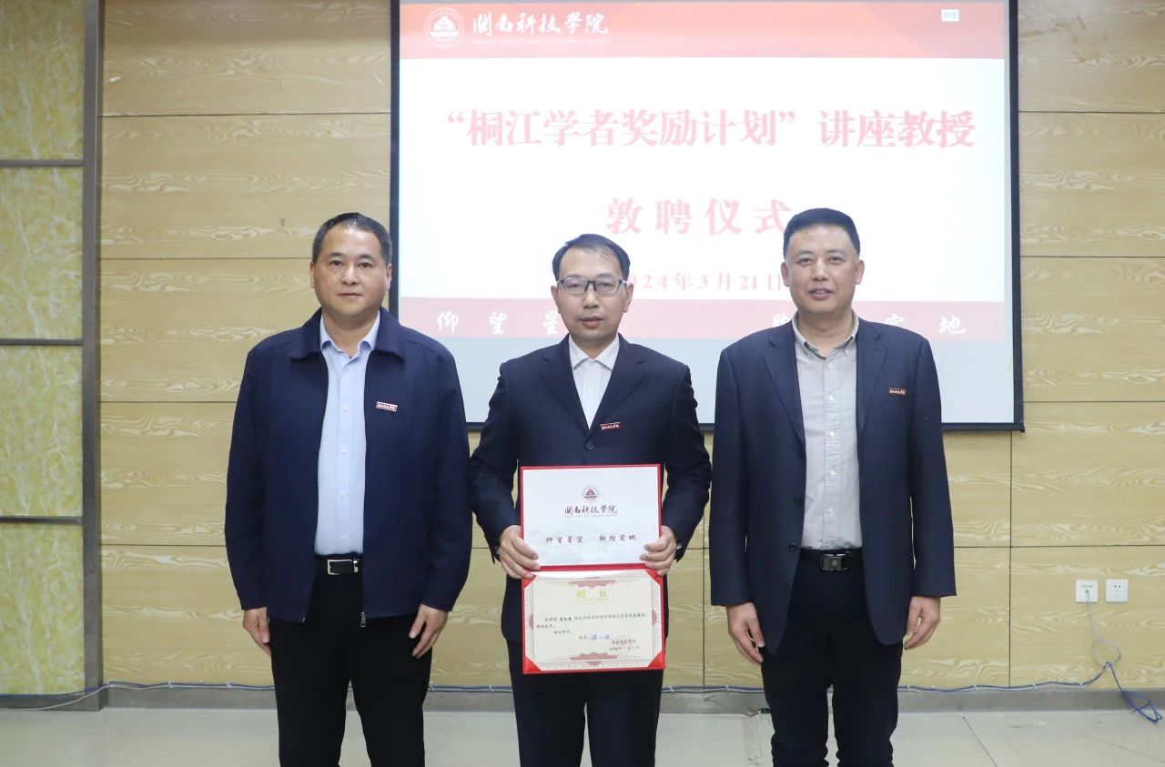 3月21日下午,九体育在线平台举行“桐江学者奖励计划”讲座教授敦聘仪式,聘任“桐江学者”李红周教授担任生命科学与化学学院讲座教授。校领导李旭、周勇军、邱永渠,校长助理刘武强出席敦聘仪式,相关职能部门负责人,以及生命科学与化学学院师生代表参加敦聘仪式。敦聘仪式由教师工作部部长周秀梅主持。