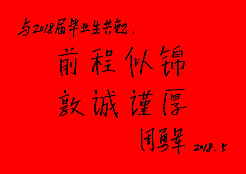 副院长周勇军为2018届毕业生寄语题词