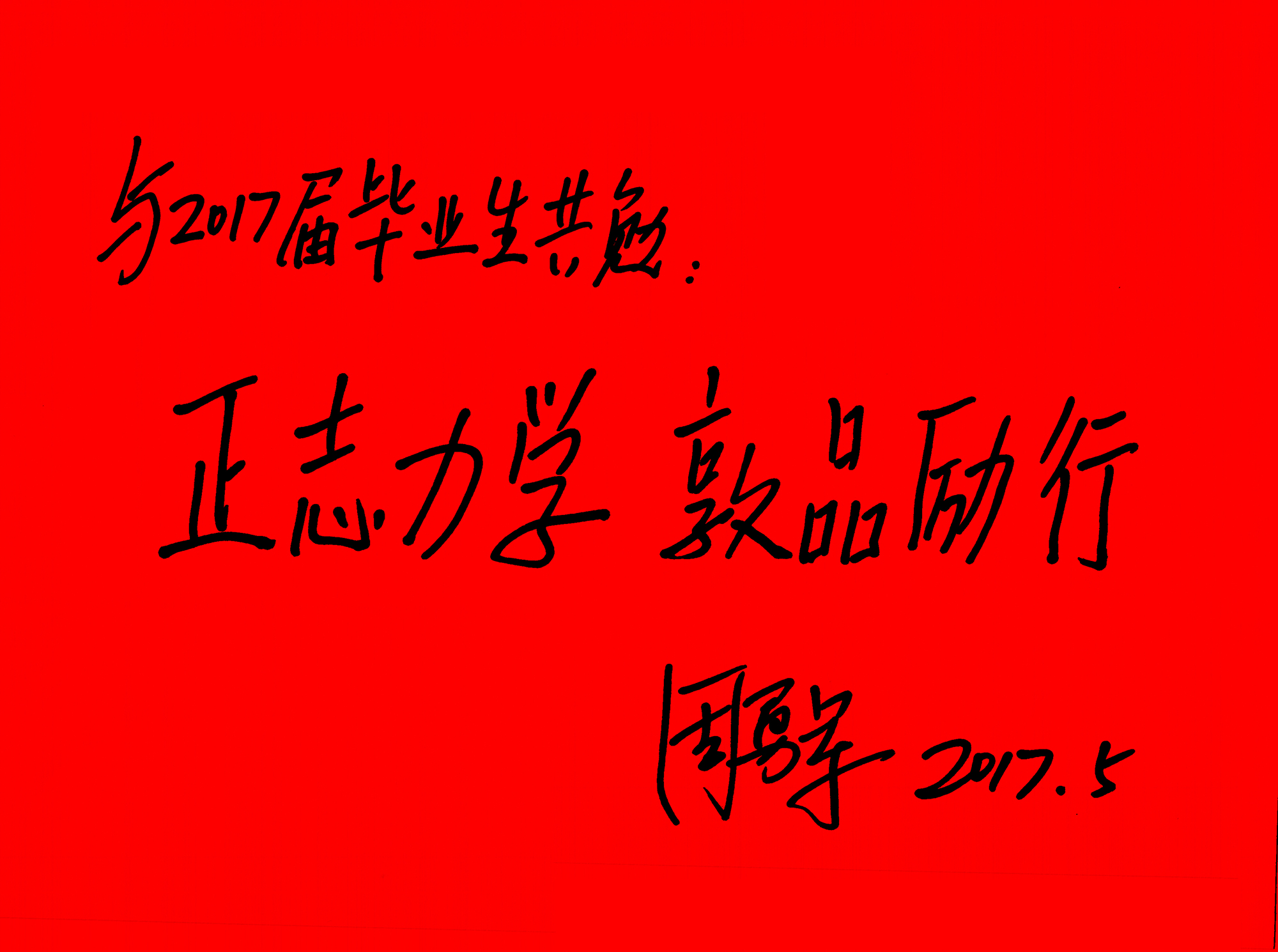 副院长周勇军为2017届毕业生寄语题词