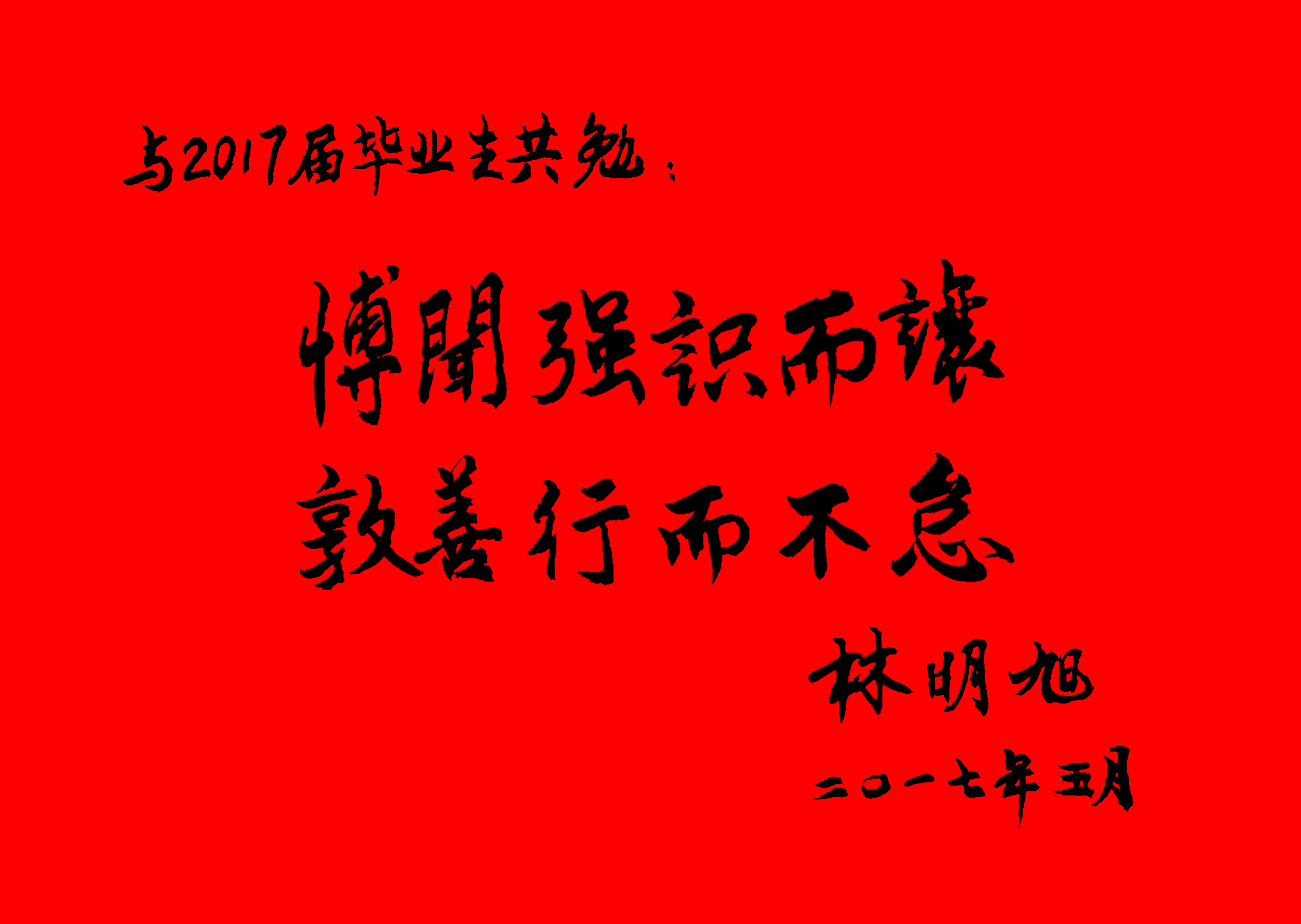 党委常务副书记林明旭为2017届毕业生寄语题词
